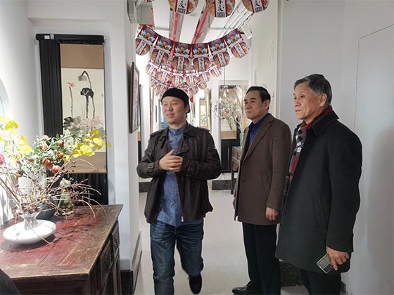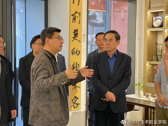▲田喜庆教授、高驰教授带领王英海院长参观鲁迅美术学院艺术博物馆