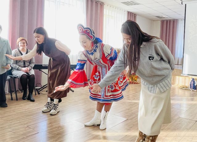 Под руководством российского хора китайские и российские преподаватели и ученики спели классическую русскую песню « Катюша »; Знакомая мелодия эхом раздалась в зале, словно возвращая людей в те годы, когда горела страсть. Российская сторона также с энтузиазмом учит членов команды преподавателей Саньцзянского профессионального художественного института танцевать русские танцы вместе; Все танцевали вместе в веселом ритме, что еще больше углубило эмоциональное общение друг с другом.