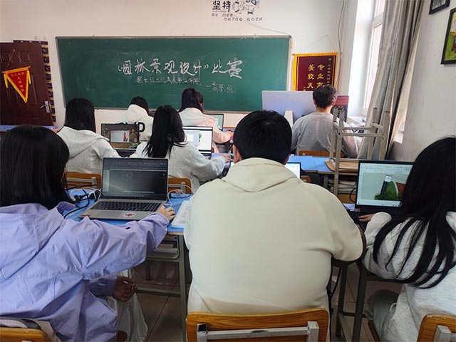 大赛紧密对接园林景观设计师、园林绿化工程师等职业标准,要求选手在4小时内完成一套完整的庭院景观设计方案。参赛团队需熟练运用AutoCAD、Photoshop、SketchUp等专业设计软件,提交包含彩色平面图、鸟瞰效果图及全套施工图的综合性作品。比赛现场,选手们全神贯注、争分夺秒,将课堂所学的园林设计、植物造景、工程施工等核心知识转化为实际方案,充分体现了理论与实践的高度融合。