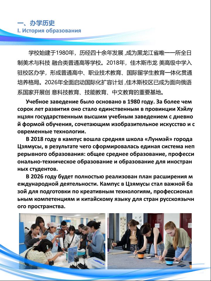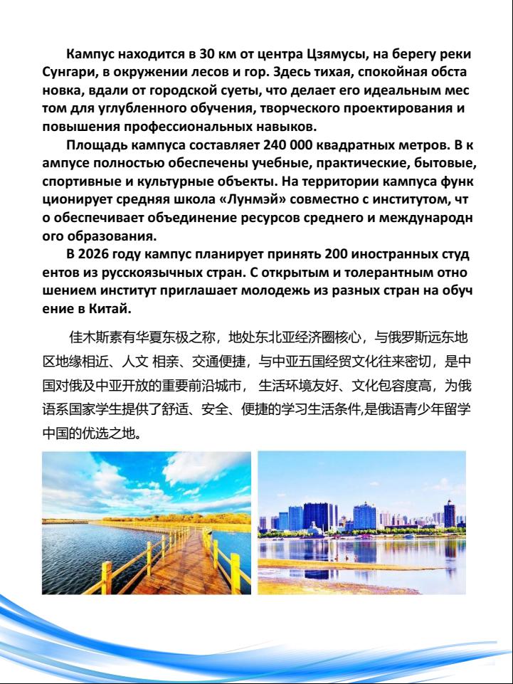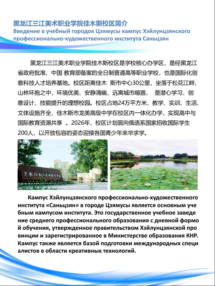Информация для приема иностранных студентов в Кампусе Цзямусы Хэйлунцзянского Саньцзянского художественного профессионального института (колледж)