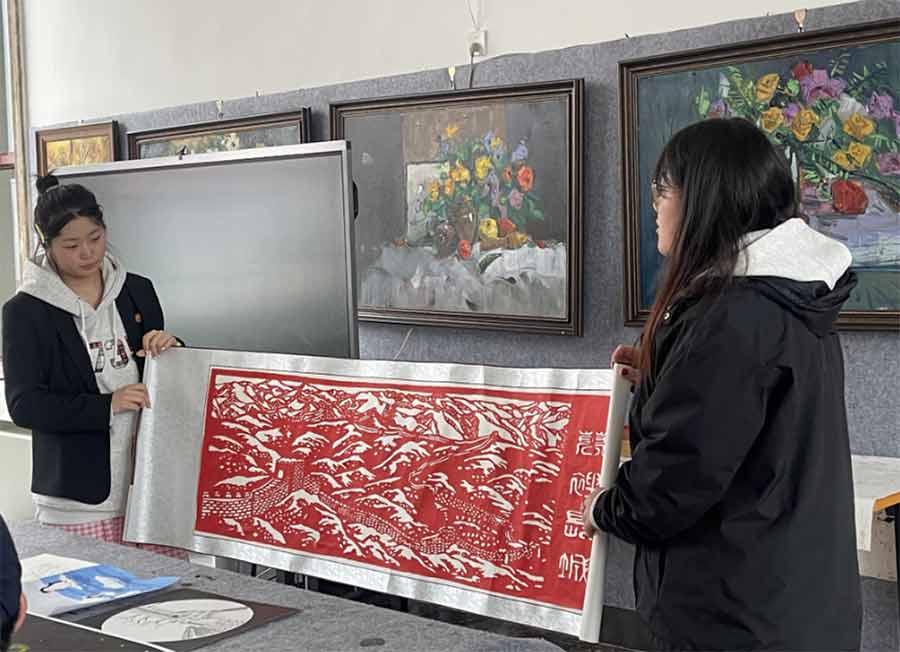 展示结束后的自由交流环节,成为思想裂变的“催化剂”,服装设计与剪纸艺术学生探讨“传统纹样的时尚转化”,书法爱好者与数字媒体学生交流“动态水墨的技术实现”,跨专业的思维碰撞催生无数创意火花。正如观众毕同学所言,看到剪纸与长城的结合,突然意识到传统技艺也可以成为讲述中国故事的现代语言。