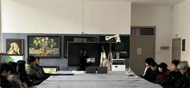 活动最后艺术疗愈与人工智能学院负责人郭勇主任进行总结。他说:“咖创屋为我们搭建了一个多元且专业的展示与交流平台,让我们看到了同学们在艺术创作领域的无限潜力与蓬勃活力。每一件作品都凝聚着同学们的心血与智慧,体现了大家对艺术的热爱与追求。同时,我们也欣喜地看到,在现场点评环节中,各院厂学生代表展现出了扎实的专业素养和敏锐的艺术鉴赏力。他们从不同角度对作品进行深入剖析,不仅肯定了作品的优点,也提出了宝贵的改进建议,这种积极交流、相互学习的氛围十分可贵。”