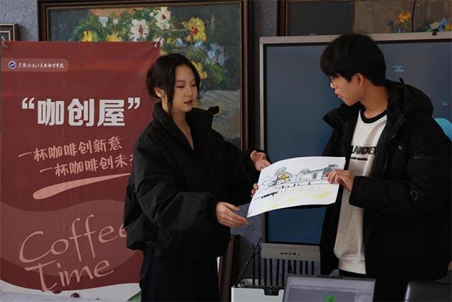 2025年11月16日,由我校学生处主办的第77期“咖创屋”学生作品交流活动在龙美书院一楼大厅如期举办。本活动旨在让学生敢想敢试,解锁不同的艺术风格,让不同学科的艺术灵感在此交汇,激发出超越想象的创作火花。作为学校重点打造的艺术交流的品牌活动,“咖创屋”以欢快自由的氛围吸引了中俄联合教育学院、设计与科技融合学院、艺术疗愈与人工智能学院、数字动画工厂、智慧建筑装饰工程学院等多个院厂学生代表的参与,现场满目皆是灵感迸发的视觉盛宴,空气里都跃动着创意的分子。