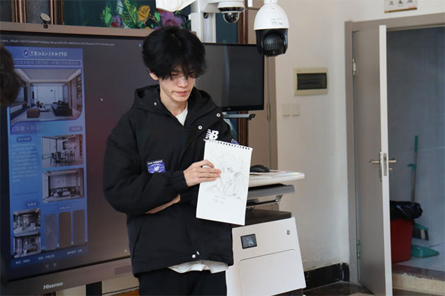 活动最后,由设计与科技融合学院王一老师进行总结。他说道:“咖创屋就像一座创意桥梁,连接起不同学科、不同风格的艺术表达,每一件作品都饱含着同学们的匠心与思考,让人倍感惊喜!本次活动的作品类型丰富多元,既有室内设计的实践成果,又有绘画创作的情感表达;既有数字动画的热血呈现,又有传统书法的传承创新。大家不仅熟练运用了各类专业工具与技法,更在作品中注入了对生活的观察、对美学的探索和对未来的期许。希望大家继续保持这份创作热情,在跨界融合中突破自我,在实践探索中沉淀成长,创作出更多有温度、有质感的优秀作品!”