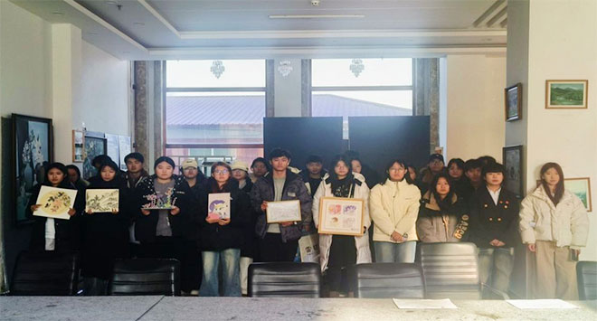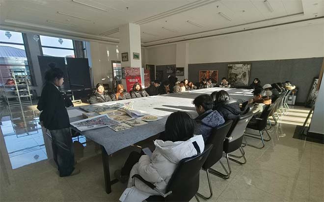 自由点评环节成为活动的又一高潮,来自不同专业的学子纷纷踊跃发言,从各自的专业视角分享对作品的理解与感悟。来自中俄联合教育学院张平同学的国画作品《晴窗梅语》深受同学们喜欢和研讨。环艺专业的同学围绕《糖厂社区》的空间布局与构图展开讨论,艺术疗愈的同学对《沈周山水临摹画》的笔墨技法与艺术风格进行了深入研究,不仅让大家对每一件作品有了更全面的认识,更为彼此的创作带来了新的灵感,真正实现了“以作品会友,以交流促长”的活动目的。