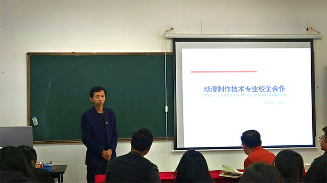 随后,美教系党支部书记马兆玉从动漫制作技术专业的独特视角出发,汇报了项目引进情况。他特别提到,美术教育专业学生在近期全省漫画展中取得的优异成绩,充分证明了美教系学生在绘画领域的潜能。他深入阐述了动画与漫画之间的紧密联系,指出漫画作为动画前期手稿的重要性,并对美教系学生在动画制作领域的潜力寄予厚望,鼓励学生们积极拓展艺术创作边界,为未来的职业发展开辟更广阔的天地。