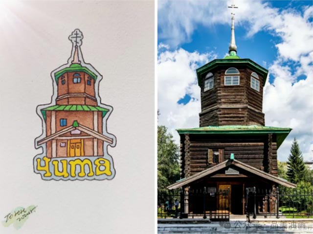 东正教在俄罗斯有着极其重要的地位,位于火车站对面的东正教堂是赤塔当地最具代表性的教堂建筑。通过设计东正教堂冰箱贴,能够展现俄罗斯的传统宗教文化,以及宗教建筑在城市中的独特意义。