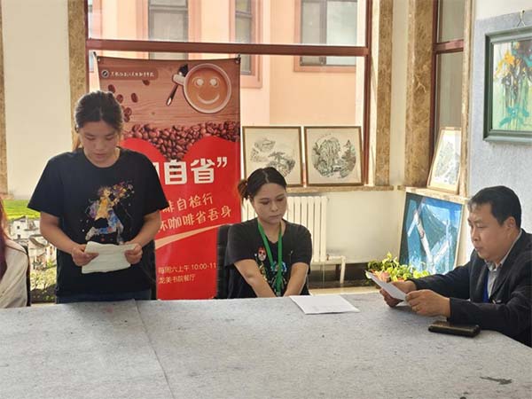 夏的调色盘藏进山间,七色的溢彩染遍了校园,在这个初夏的五月,黑龙江三江美术职业学院举办了第三十四期“咖自省”活动,本期“咖自省”活动由影视动画系主任赵云鹏老师主持,美术教育系党支部书记马兆玉作总结讲话。来自影视动画系的刘世佳、周建民,数字传媒系的赵普然、魏婧彤、李媛媛,环境艺术工程系的邓林海、赵健;美术教育系的王宇、葛丞彦,专升硕国际学部的赵薇等十名同学参加。
