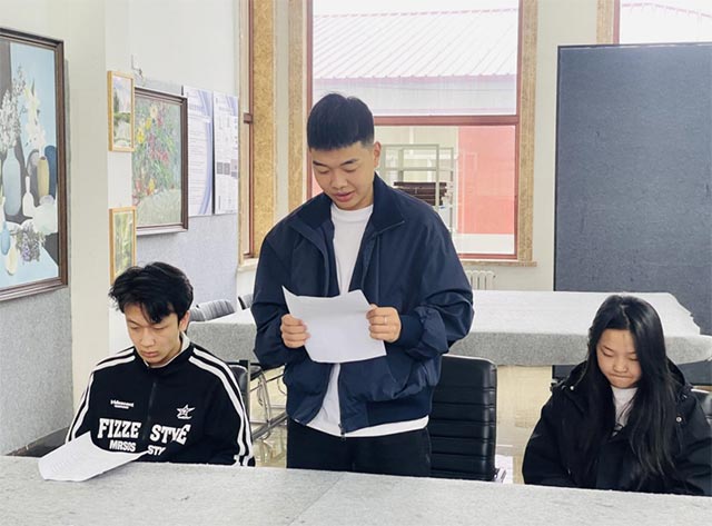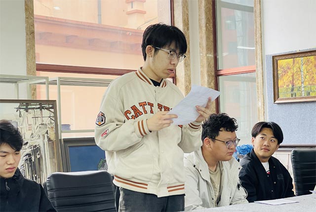 作为团员,他主动学习党的理论,积极参加组织活动,努力向党员标准靠拢。他认为党员不仅是荣誉,更要在思想和行动上与党保持一致,用实际担当践行使命。学业上他同样刻苦,专业成绩名列前茅,常泡画室加练。他坚信扎实的专业能力是服务社会的基础,希望未来能为国家发展贡献力量。他的真诚分享激励了在场同学,大家相信这份追求与努力会让他走得更远。