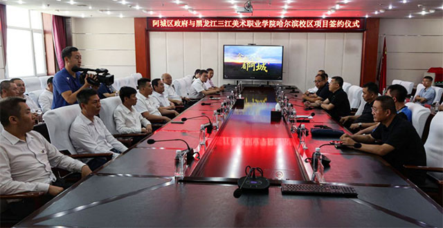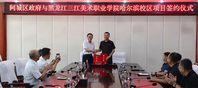 7月25日,黑龙江三江美术职业学院哈尔滨校区项目签约仪式在阿城区政府会议室举行,学院理事长、院长王英海教授,学院副院长梁晓勃以及我院各部门负责人共赴阿城区参加签约仪式。阿城区委副书记、区长白鸿亮,阿城区人民政府副区长邹永强、王殿友以及区企投局、发改局、教育局、资规局、住建局、土地征收中心、电业局、料甸街道、哈东供热有限责任公司、中燃燃气发展有限公司等相关部门领导共同参加签约仪式。