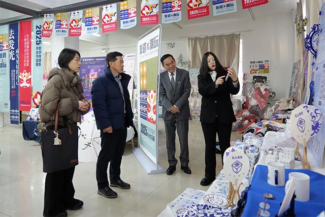 在王英海等校领导的陪同下,孙上昊领事一行饶有兴致地参观了设计与科技融合学院、智慧建筑装饰工程学院及数字动画工厂学生创意设计作品展室。孙领事对我校学生创作或设计的作品表示赞赏,希望我校未来与韩国高校之间进一步扩大合作范围,丰富合作内容,为中韩两国文化和教育交流作出新贡献。