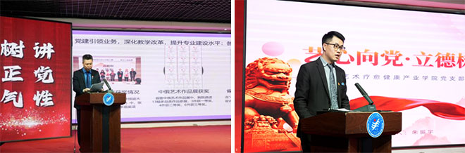 会上,北京教学实习基地党支部、智慧建筑工程学院党支部、艺术疗愈健康产业学院党支部、设计与科技融合学院党支部、学团党支部、行政后勤党支部、党群党支部、国际学院党支部、数字动画工厂党支部等九个党支部书记依次登台述职。各党支部书记紧扣“履行职责情况”“存在的主要问题及原因”“下步工作思路和主要措施”三大板块,围绕政治引领、组织建设、立德树人、产教融合等重点内容,在规定的时间内晒成绩实事求是,摆问题不遮不掩,谈整改有的放矢。