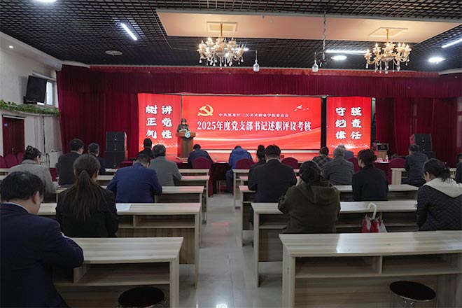 2026年4月10日,黑龙江三江美术职业学院党委组织召开2025年度党支部书记述职评议考核会议。会议严格遵循省委教育工委“一述一评”要求,坚持真点问题、点真问题,在严肃认真的政治氛围中全面检阅年度基层党建工作成效,为新一年党建与业务深度融合校准航向。