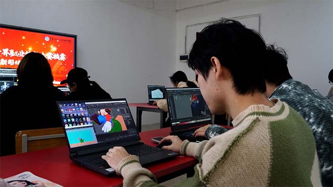 大赛分为预赛与决赛两个环节,全程采用现场电脑上机创作、限时提交作品的竞技模式,要求选手在规定时间内完成三维动画短片或融媒体数字内容创作,从模型搭建、动画表现、后期合成到作品传播价值进行全面考核,既夯实了学生的专业功底,也贴合数字创意与冰雪文旅传播的实际岗位要求。大赛鼓励学生融入龙江文化、冰雪特色、校园生活、数字创意、公益宣传等正向内容,全程坚守原创底线,杜绝侵权抄袭。