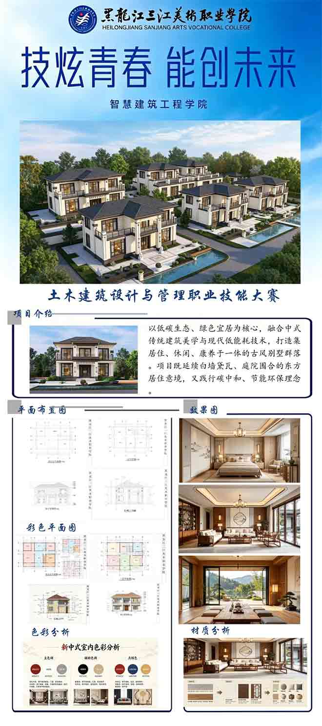 为对标世界职业技能大赛土木建筑设计与管理赛道,聚焦数字化施工前沿技术,锤炼学生专业实践能力,4月16日上午9时,黑龙江三江美术职业学院智慧建筑工程学院举办土木建筑设计与管理赛道的职业技能大赛。赛项以“《古韵山水·低碳新居》二层中式别墅BIM全流程设计”为命题,于当日正式开赛。