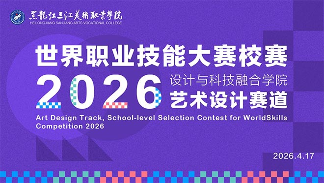 2026年4月17日,黑龙江三江美术职业学院第六届职教周系列比赛(设计与科技融合学院·艺术设计赛道)成功举办。本次赛事以毕业季视觉全案设计为核心,聚焦青春、启程、新征程主题,全面检验学子创意表达、软件实操与品牌落地能力,展现我校艺术设计专业教学成果与学子风采。