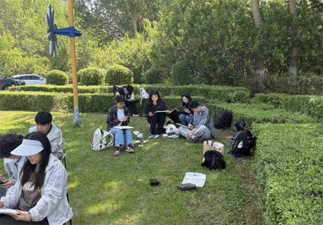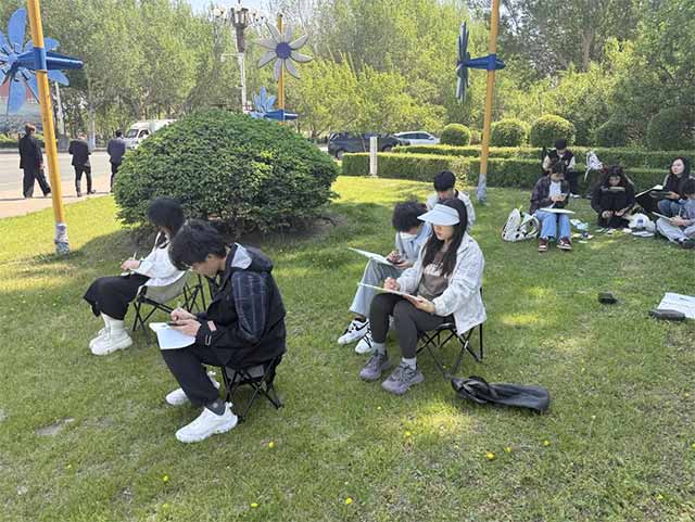 带队老师穿梭在学生中间,对他们进行悉心指导。他们从构图技巧、线条运用、光影表现等方面入手,帮助学生们解决在速写过程中遇到的问题。“注意观察物体之间的比例关系,线条要有轻重缓急的变化,这样才能让画面更有层次感和节奏感。”一位老师耐心地向学生讲解道。通过老师的指导,同学们的速写技巧得到了进一步提升,一幅幅生动的速写作品跃然纸上。这些速写不仅是此次采风的成果,更是他们未来教学实践与艺术创作的珍贵素材。
