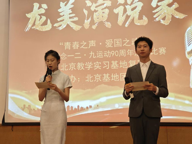 九秩风云激荡,青春薪火相传。为缅怀“一二·九”运动中挺身而出的爱国青年,传承不朽的红色精神,2025年12月9日,北京教学实习基地举行“龙美演说家-青春之声·爱国之魂”暨纪念“一二·九”运动90周年演讲比赛。师生以声为媒、以情为桥,共同回望那段救亡图存的峥嵘岁月,抒发新时代青年的家国情怀。