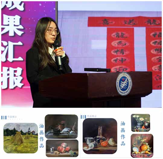 王静宇同学在汇报中展示了她的油画作品,他的油画作品种类丰富,造型能力强,有自己的想法和创意。同时,王静宇同学的其他作品也是别具一格,很多作品都获得了奖项。