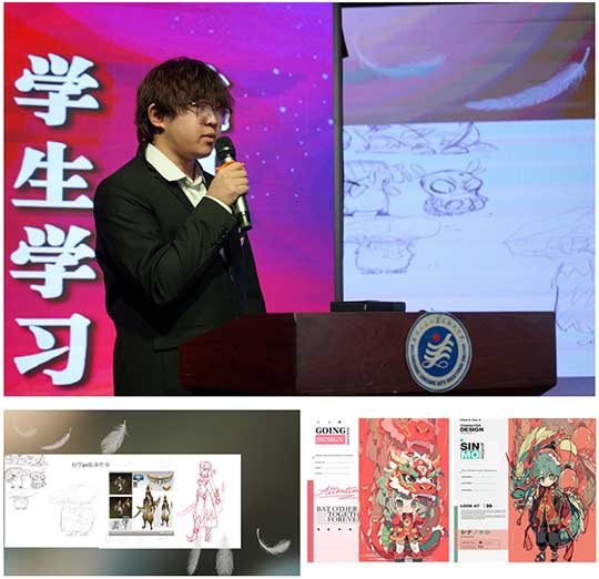 影视动画系参与汇报的是刘勇琦和赵昕悦同学,刘勇琦同学在他的作业中充分展示了自己的设计作品与设计理念;他的作品紧跟设计前沿,真正实现了“作业变作品,作品变商品”的转化。
