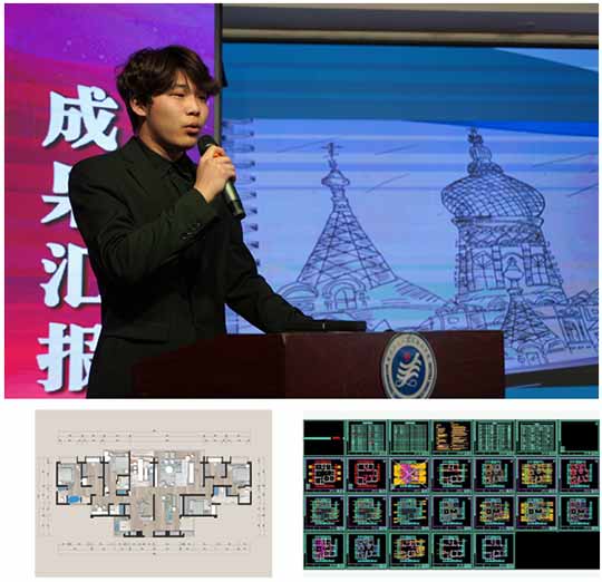 环境艺术工程系参与汇报的是李弘历和刘志成。李宏利同学在汇报中,他的CAD效果图作品让人印象深刻,可见他在校学习期间很用功,同时也能看出他在设计中能主动求思求变,追求更大的进步。