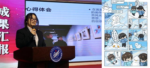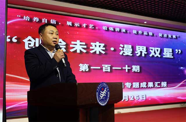 11月26日,黑龙江三江美术职业学院在哈基地学院礼堂举办了第110期学生学习成果汇报会。本期汇报的主题是“创绘未来·漫界双星”,这是一期特别的成果汇报会,因为参与汇报的师生都是在“第21届黑龙江漫画双年展”获奖的人员。12名师生的汇报各具特色,分别讲述了本次获奖作品创作过程、创意思维以及实践应用等。