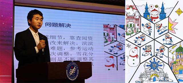 环境艺术工程系的宿宝丽老师在座谈会上展示了她的作品《冰晶颂华、共筑中国梦》。作品灵感来源于对东北振兴的深入思考和探索,作品以冰雪为主题,展现龙江的壮丽风光和亚冬会的激情。通过动漫的形式,传递中国梦的理念,让更多人了解龙江,喜欢龙江。通过她的分享,学生们深刻理解了艺术作品中创新的重要性,并学会了如何克服创作中的思维瓶颈,为同学们未来的艺术探索之路提供了宝贵的启示和指导。