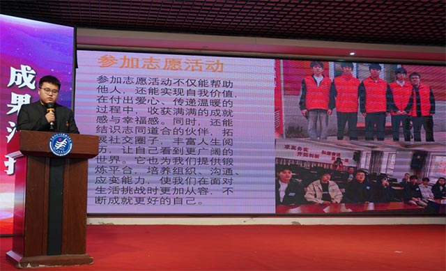 杨朗月同学积极参与学院组织的各种活动,她重点汇报了从假期社会服务活动。假期中,她与志同道合的伙伴们一同走进了社区,为居民们提供了各种形式的帮助与服务。通过这次社会服务,她深刻体会到了帮助他人的快乐与成就感。当看到社区因为我们的努力而变得更加美好,她的心中充满了满足与自豪。