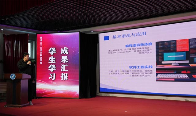 数字传媒系2023级软件一班的张国怡同学率先登场,以专业自信的姿态拉开汇报序幕。毕业于绥棱林业局中学的他,凭借扎实的专业积累与创新思维,献上一场精彩的成果展示。汇报中,张国怡围绕Java学习展开深度分享,从理论框架解析到实践路径规划,尽显深厚的知识储备与清晰的逻辑思维。他详细阐述了在线课程精研、实践项目打磨、开发者社区互动的多维学习模式——通过在线课程夯实基础,在实战项目中锤炼技能,与行业伙伴探讨技术难题,不仅拓宽了技术视野,更构建起高效解决问题的能力体系。现场展示的专业作品,将理论知识与创新实践深度融合,充分彰显其在数字领域的探索热情与成长潜力。