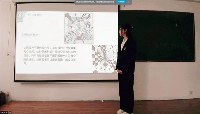 第四位汇报的是来自北京教学实习基地2024级6班的刘紫晗同学。汇报中,两幅构思精巧的平面构成作品与立体构成作品,展现出独特的设计巧思。作为24级学生会新媒体运营部成员,刘紫晗用镜头定格校园活动的珍贵瞬间,见证校园的多彩风貌,其出色表现也为她赢得多张荣誉奖状。谈及未来,她坚定表示将保持优异成绩,认真完成课业,在设计实践中不断锤炼思维与创作能力,向着更高艺术目标稳步迈进。