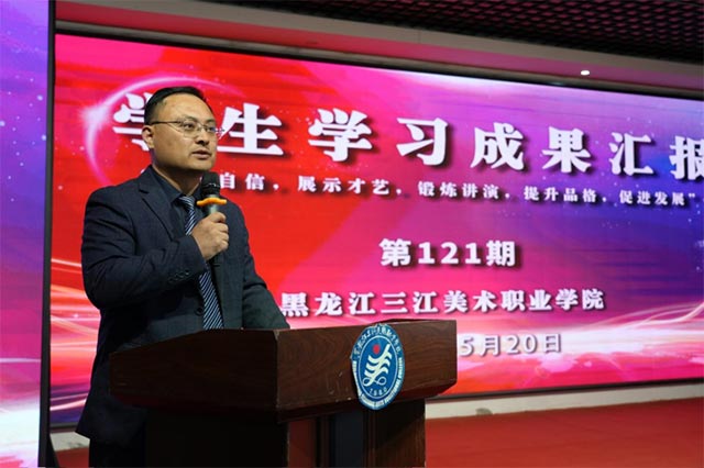 5月20日,黑龙江三江美术职业学院第121期学生学习成果汇报会在学院哈尔滨教学实习基地演播大厅如期举行。来自4个教学系和1个教学实习基地的10名同学参与了本期汇报。