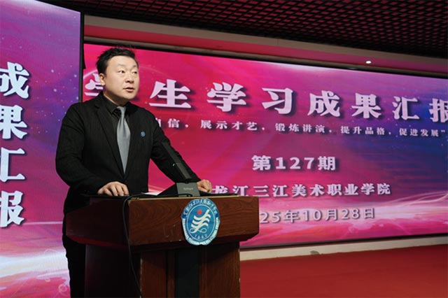 假期实践的余热未散,专业成长的硕果已丰。2025年10月28日,黑龙江三江美术职业学院以“新锐力量智慧商企”为主题,举行第127期学生学习成果汇报活动。本次汇报聚焦暑期项目实践专题,既是学子专业能力的集中检阅,更是学校“产教融合、真题真做”教学理念的生动实践。活动由设计与科技融合学院王一老师主持,汇聚五院一场学子代表,通过商业品牌设计、空间优化方案、动画创作、非遗文创等多元成果,践行“培养自信、展示才技、锻炼讲演、提升品格、促进发展”的育人宗旨,为师生、校企搭建起交流互鉴的实践桥梁。