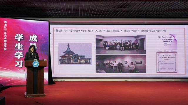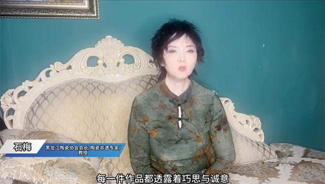 此前,我校组织师生在“非遗产品活动周”参与相关活动时,哈尔滨陶瓷协会会长、非遗陶瓷专家石梅教授便被作品中蕴含的文化创意与专业水准吸引,对师生的实践成果产生浓厚兴趣。而在本次第127期学生学习成果汇报中,我们荣幸邀请到石梅教授担任点评嘉宾,她通过现场分享的点评视频,对我校育人成果给予高度认可。石梅教授提到,从展现寒地文化的非遗文创,到兼具地域特色与传播性的小松仙IP文创,清晰看到了我校在“非遗传承与现代设计融合”方面的扎实实践,学生作品既深度保留了黑土文化、非遗技艺的核心底蕴,没有脱离传统根基,又精准贴合市场实用需求与大众审美,真正实现“传统工艺生活化、文化创意市场化”。她特别肯定,我校这种以真实项目为载体、以文化传承为内核的“实践育人”模式,不仅让学生在实战中快速提升专业能力,更为民俗文化活化、非遗可持续发展提供了可借鉴的新思路,值得进一步推广与深化。