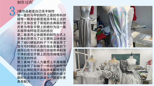 在专业能力上,白杨同学对服装专业学习软件的熟练运用,展现了过硬的实操功底,而更难能可贵的是,她并未止步于技术层面的掌握,而是融入了自己的独立思考——将艺术创作与实际问题紧密结合,以环保为核心主题展开创作,让设计不再是单纯的审美表达,更成为回应社会议题、传递责任担当的载体。这种 “源于专业、高于专业” 的创作视角,既体现了她对行业趋势的敏锐洞察,更彰显了新时代青年学子的社会责任感。