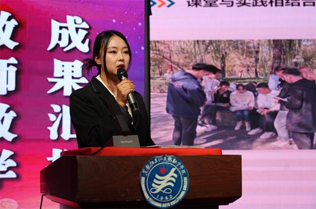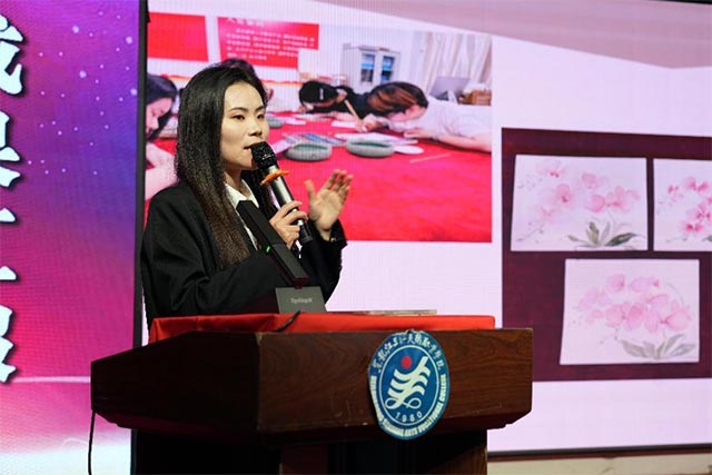 首先汇报的是我院环境艺术工程系辅导员兼教师赵佳,赵佳老师在教学过程中主要以实践教学为主,主要讲述手绘效果图表现技法、立体构成、综合实训等方面课程。她的课堂上,重点培养学生的动手能力,通过“示范+启发+翻转课堂”的教学方式提高课堂教学效果,并取得一定的成效。
