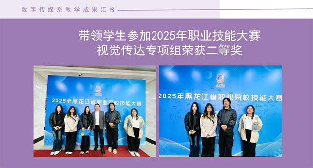 王爱君老师在教学过程中,采用“项目进课堂”的实践教学方式,通过参与哈尔滨医科大学马克斯主义学院戏剧社实践项目引入课堂,通过项目实践案例教学的嵌入,使学生真正做到了与企业项目零距离对接。同时,她参与指导的2025数字传媒系毕业设计展——“遇见未来”多项作品获得黑龙江高校艺术设计类专业学生毕业设计奖项。