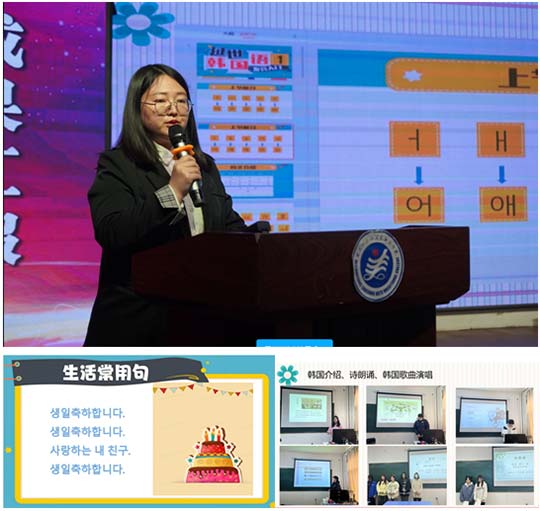 第四位上场汇报的是国际学院韩语教研室李爽老师,他毕业于韩国全北国立大学,具有多年的韩语教学经验。在教学过程中,李爽老师能做到有教无类因材施教,认真制定科学合理的教学计划,帮助学生提高韩语水平。在教学方法上,他能准确抓住教材中的重点、难点并结合新课程理念,通过“互动+启发+翻转课堂”的教学方法,使学生在短时间内的掌握韩语的发音技巧,达到指定的教学目标。