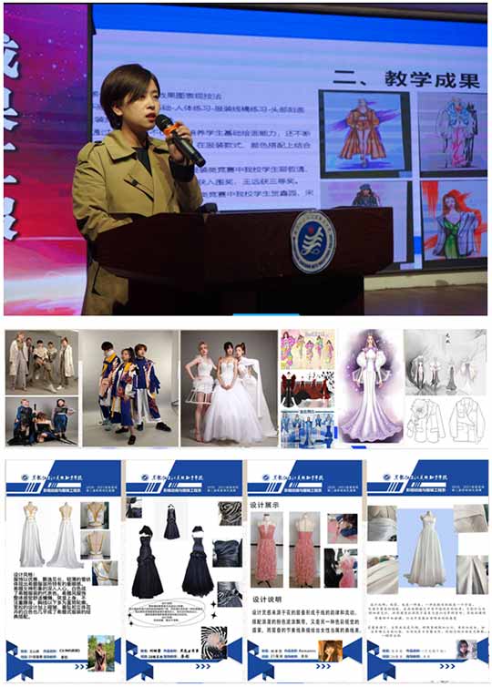 第六位上场汇报的是影视动画系服装设计名师工作室李彤老师,他是我院教学名师,具有多年的服装设计行业工作经历,是双师型教师的代表。在教学过程中,他主要以实践为主,很好的践行了我院“课程+写生(实践)+项目(案例)+竞赛(竞争)”的教学理念,因此,取得了很多的教学成果。