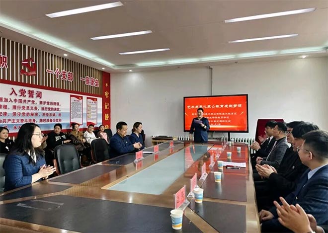 与黑龙江建筑职业技术学院艺术设计系党支部开展交流共建,围绕支部标准化建设、党建与专业融合路径、学生思政教育创新等议题座谈研讨,互赠党建工作手册与专业教学成果集,组织党员教师、学生代表交叉观摩课堂教学,实现党建与教学经验双向互鉴。