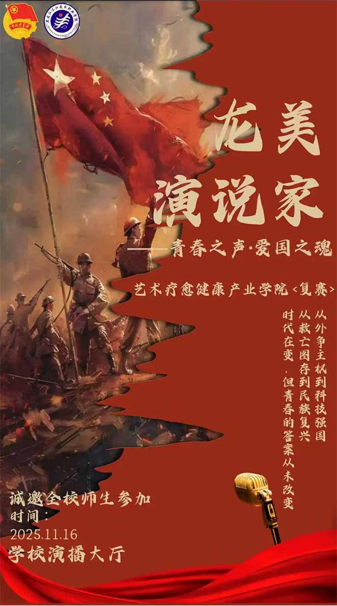 开展系列爱国主义教育活动,举办“龙美演说家——纪念一二•九运动90周年”演讲比赛,组织学生围绕历史传承、爱国精神等主题参赛并进行表彰;开展纪念中国人民抗日战争暨世界反法西斯战争胜利80周年主题征文、剪纸艺术作品展,对优秀作品进行表彰奖励并在校内展厅展出,引导师生铭记历史、传承红色基因。