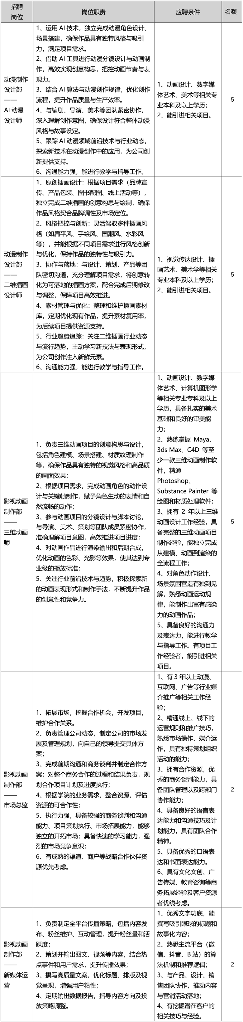 4、数字动画工厂、数字媒体运营中心招聘