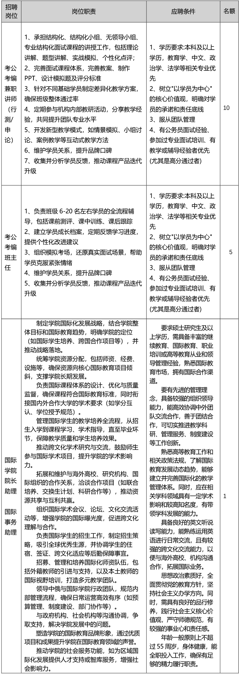 1、应具有硕士或博士学历学位; 2、应聘岗位有研究成果和3年以上实践经验;如果在某个岗位或领域有突出业绩,学历可以放宽。