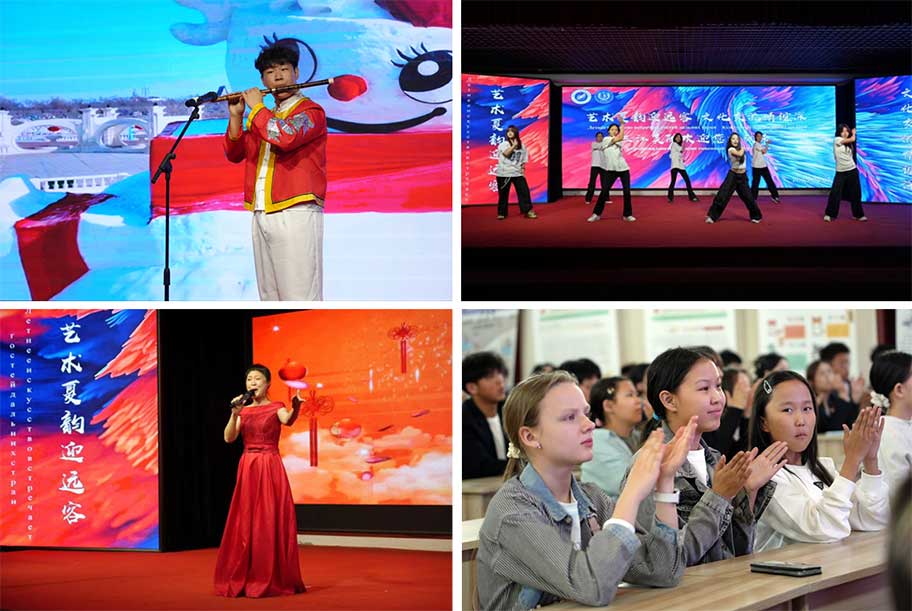 参观过后,一场饱含中方学子心意的欢迎晚会热烈上演,龙美学子以青春洋溢的歌舞形式表达了对俄罗斯朋友的诚挚欢迎。动感十足的开场舞瞬间点燃现场气氛。随后,《红红的日子》传递出中国百姓的生活喜悦,而《莫斯科郊外的晚上》的旋律则让俄罗斯师生倍感亲切与温暖,引发了现场的共鸣。