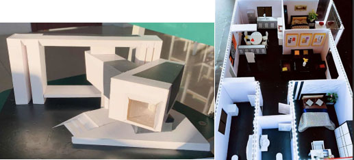 讲授模型空间的布局、设计、包括形象背景墙、墙纸、地面的铺贴,软装的设计。通过循序渐进的教导,两种方案模型的制作,使学生们认识了解了丰富的环境艺术设计和方法。不断加深了学生们的知识掌握深度,完善了学生们的知识结构,学生们的学习效果也得到提高,同时提升了学生们的动手能力、对实践的兴趣和对建筑结构的掌握能力。在学习此门课程后对模型制作产生了浓厚的兴趣,并积极配合完成了结课成品展示。另外,在教学过程中最主要的是注意对学生学习态度方面的引导,这门课程实践性比较强,强调学生们的动手操作能力能理论知识相融合,寓教于乐使学生们增加了对设计类课程的学习兴趣,并愿意接受小组配合完成结课作业。