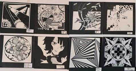 基础较薄弱的同 学绘画 中等水平绘画 优秀学生绘画