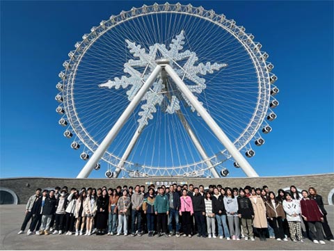 最后,大家来到了雪花摩天轮脚下。雪花摩天轮高度120米,是冰雪大世界乃至哈尔滨市的标志性建筑。在这里,大家了解了摩天轮的设计结构和安装要求,也了解了相关配套设施设计要点。