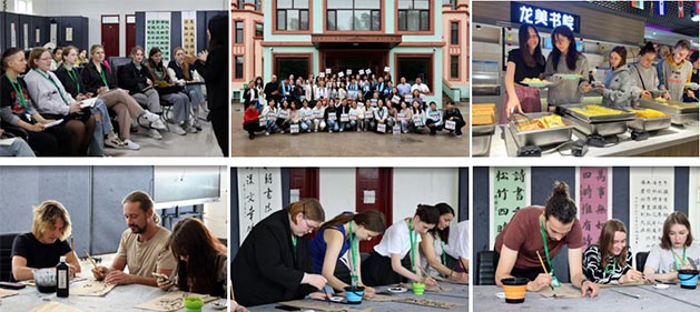 ▲俄罗斯留学生在黑龙江三江美术职业学院研学