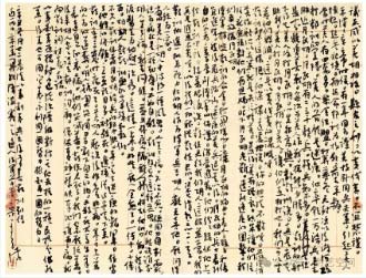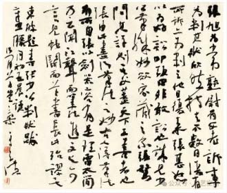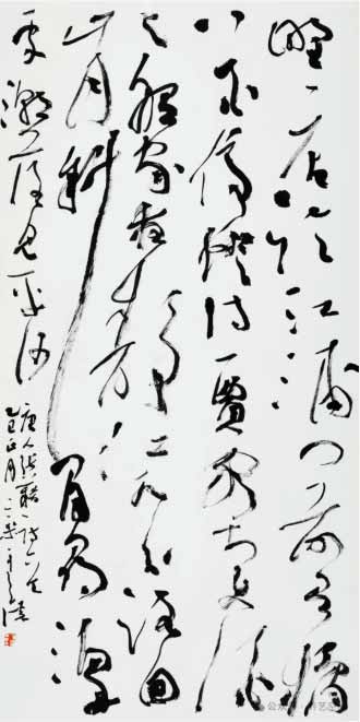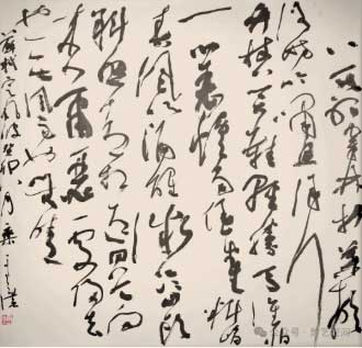 5.艺术要有创造性。现在的书法已经基本脱离了实用功能,进入了一个全新的展厅时代,作为一个纯粹的艺术门类呈现在大众的视野之内,尤其是草书。草书有它独立的艺术语言,也有它特定的符号,非专业人士不易辨认和欣赏。所以在创作方面就给予了更加广阔的空间,难度也相应增加了许多,它打破了正书的中规中矩,根据作品中不同的需要改变字的结构和空间。这就需要有丰富的想象力和浪漫情怀,将字加以夸张处理,或收或放、或大或小、或粗或细、或繁或减、或欹或正、或端庄或错落,神态各异,气象万千。但不管如何变化也要秉持传统,植根传统,这样才能具备它的合理性,不能随性任意无法则地去变。
