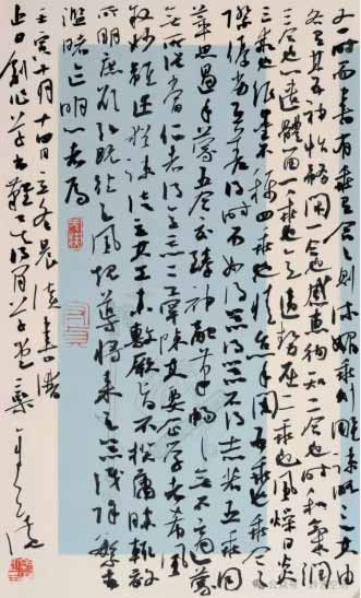 6.要了解草书创作中的复杂多变性。因为草书的灵活性和自由空间相对来说比较宽松,更容易抒发性情,表达内心。但有的时候,越是传神的东西就越难描绘出我们内心憧憬的样子,因为传神只是一个概念,它没有具体的形象和标准,这就需要我们能够有所见地。要有独立的审美观和创作思想,在不断地实践中总结出不同的应对手段,针对作品创作中出现的任何情况都有处理办法。当然,这需要不断地探索和实践。