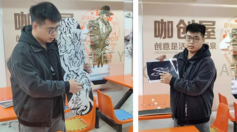 ▲2021级数传系视觉传达专业的刘强同学展示自己的作品